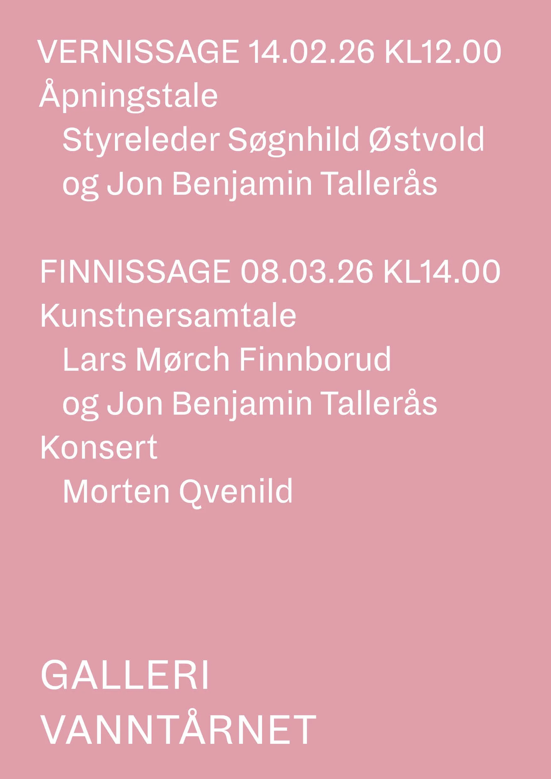 Utstillingen akkompagneres av en tekst av Lars Mørch Finborud, og i løpet av perioden arrangeres en samtale mellom ham og Tallerås. Flere av bildene i utstillingen er skutt i konteksten av et samarbeid mellom Morten Qvenild, Finborud og Tallerås i forbindelse med Qvenilds nye plate Lokalt Piano.